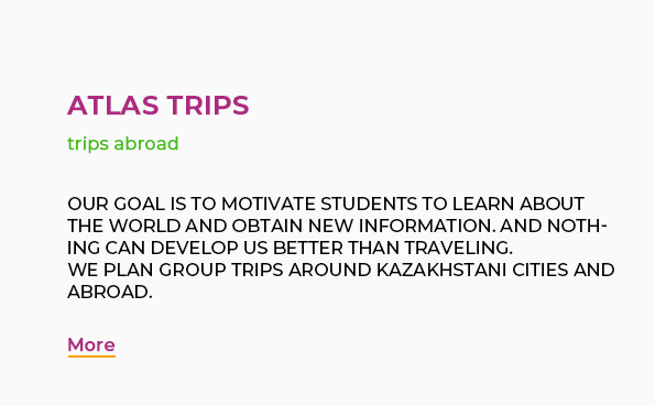 Understanding the algorithm of actions on the path to choosing his profession will begin to do (rather than theorize), create an environment of people from a professional environment of interest, select suitable universities (abroad, in Kazakhstan), begin to prepare (SAT, IELTS / TOEFL), or maybe even create his own business or take the GAP year and get a job. Our task will be to support and shift responsibility to a child (of course, giving important advice and listening to his/her opinion). Atlas, in turn, constantly organizes supporting events to consolidate the results achieved and further progress.